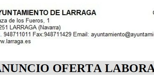 - CONVOCATORIA PARA LA CONTRATACIÓN EN RÉGIMEN LABORAL TEMPORAL DE UN PUESTO ADMINISTRATIVO/A AL SERVICIO DEL AYUNTAMIENTO DE LA VILLA DE LARRAGA