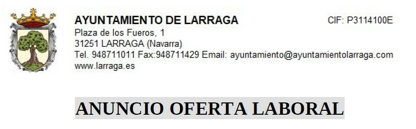 CONVOCATORIA PARA LA CONTRATACIÓN EN RÉGIMEN LABORAL TEMPORAL DE UN PUESTO ADMINISTRATIVO/A AL SERVICIO DEL AYUNTAMIENTO DE LA VILLA DE LARRAGA